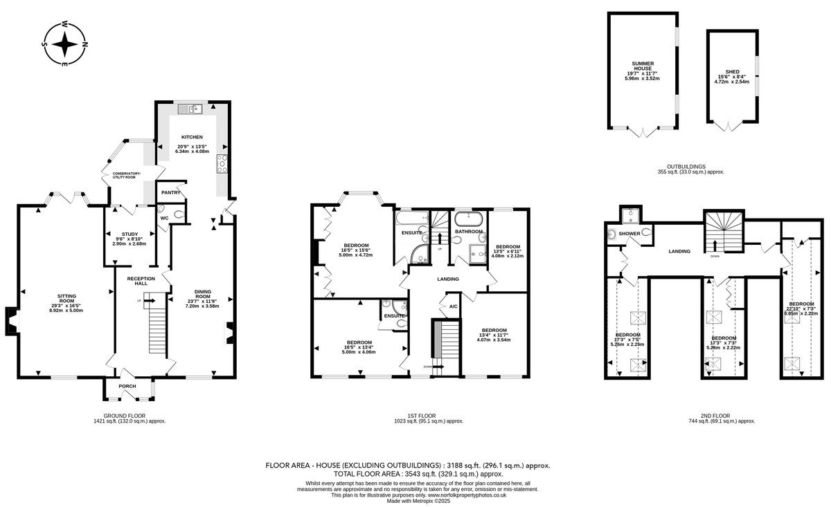 - Seven Bedrooms spread over Three Floors with Four Bath/Shower Rooms