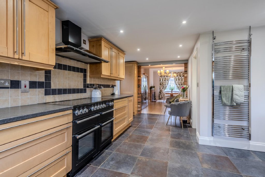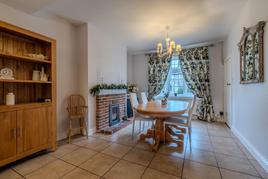 - Open Plan Kitchen/Dining Room with a Wood Burner in the Dining Area