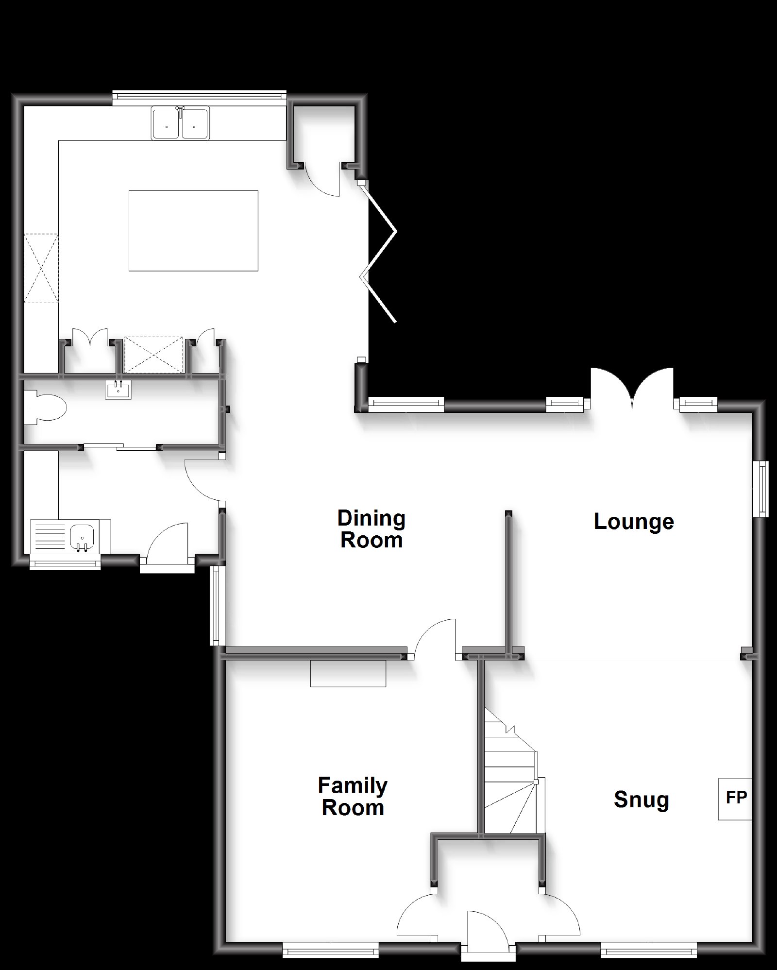 - Vast living space including dining room, family room and snug