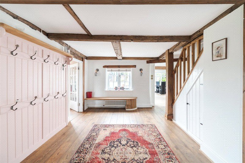 An entrance porch leads to a large reception hall with an oak boarded floor and a fine view onto the garden. To one side is an attractive family snug with fitted dresser, and inglenook fireplace (with bressummer beam, wood burning stove and bread oven).
