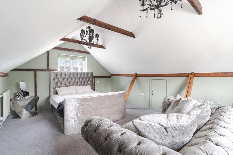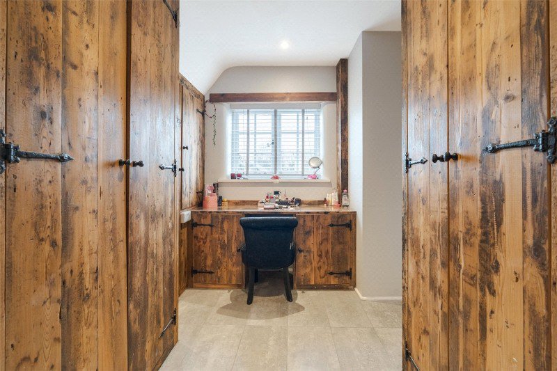 There is a long split level first floor landing. The dual aspect master bedroom overlooks the gardens and boasts a dressing area (with fitted dressing table and wardrobes) and an en suite shower room.