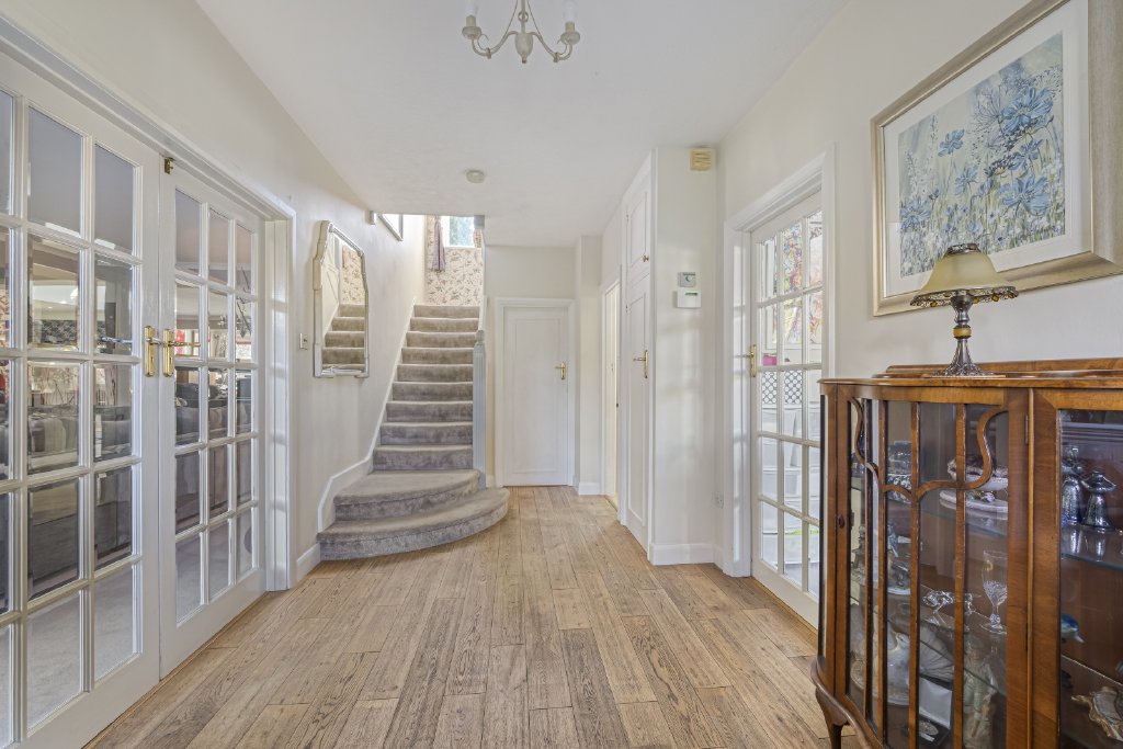 Internally, the property unfolds with a sense of space and grandeur. Three well-appointed reception rooms provide exceptional flexibility for both formal entertaining and relaxed family living, each benefitting from classic detailing and views over the gardens. A dedicated study offers an ideal environment for home working, quietly positioned away from the main living areas.