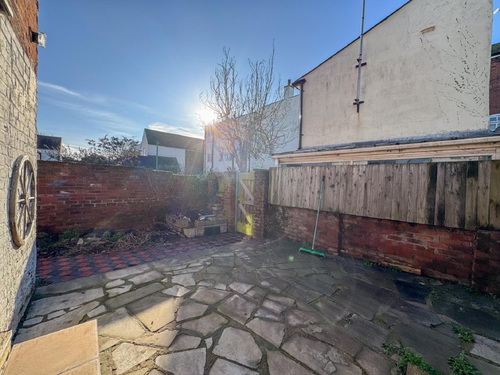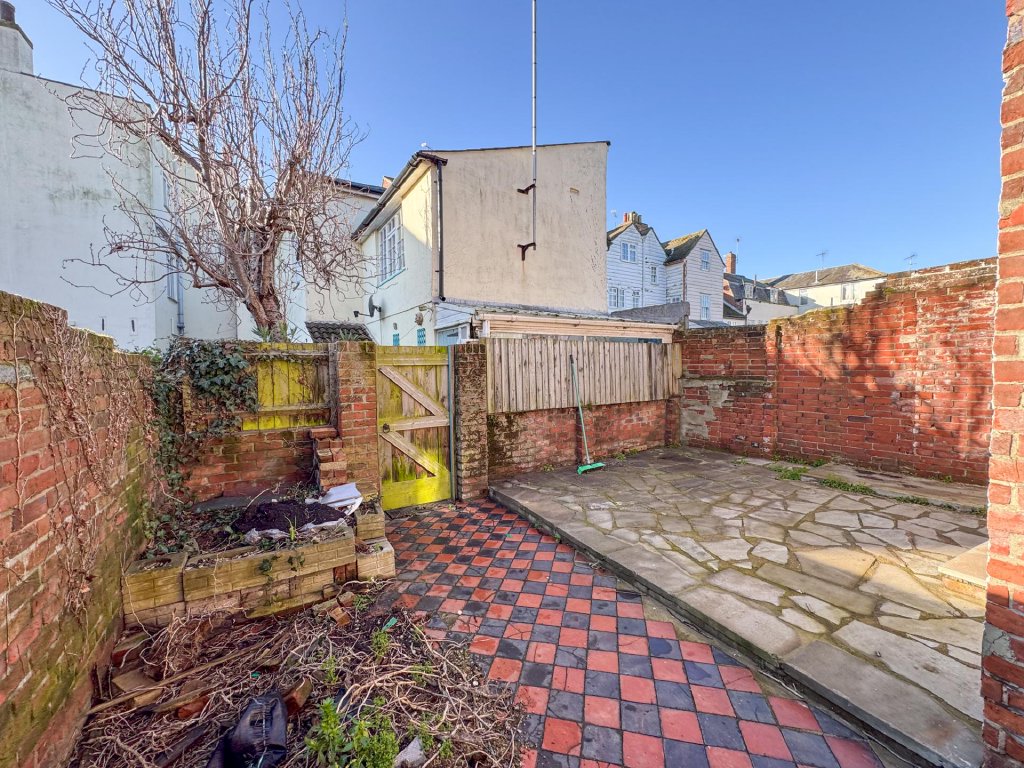 STEP OUTSIDE French doors from the kitchen lead to an enclosed, low-maintenance garden, attractively retained by red brick walls. The garden benefits from pedestrian access through to West Street, enhancing both convenience and flexibility, particularly for alternative uses of the property.