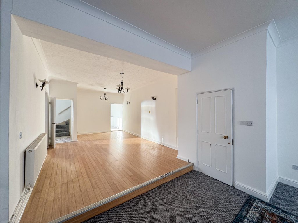 From the moment you enter, the sense of scale and light is immediately apparent. The ground floor hosts two impressive open-plan reception rooms extending to over 40 feet in combined length. Flooded with natural light from tall bay windows and complemented by period detailing, these spaces offer a welcoming and flexible setting for both formal entertaining and relaxed family living.