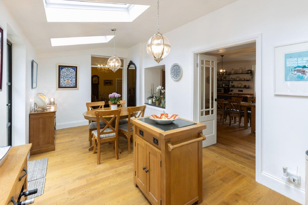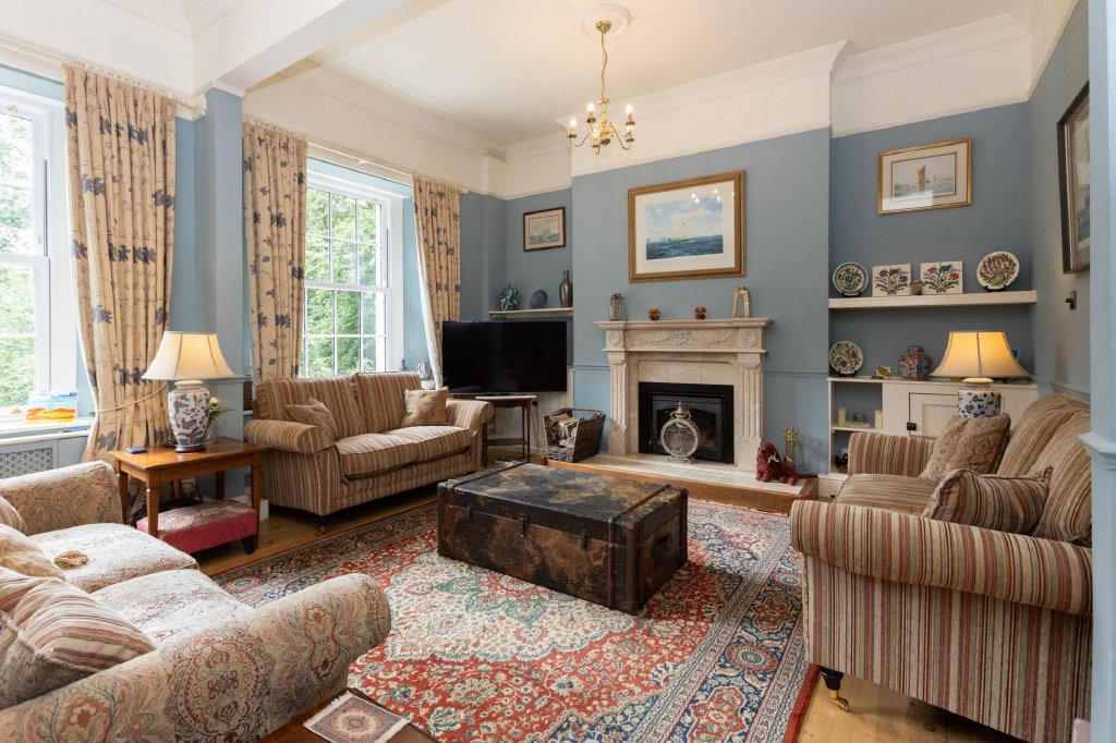 Set over 4,500 sq. ft., Hawkmoor House is a stunning period home with historic charm and modern comforts. Originally built around 1864 and nearly fully rebuilt in 1990, the property has recently undergone extensive additional renovations. High ceilings span both floors, paired with tall sash windows (UPVC), ornate coving, ceiling roses, elegant picture and dado rails, and grand fireplaces.