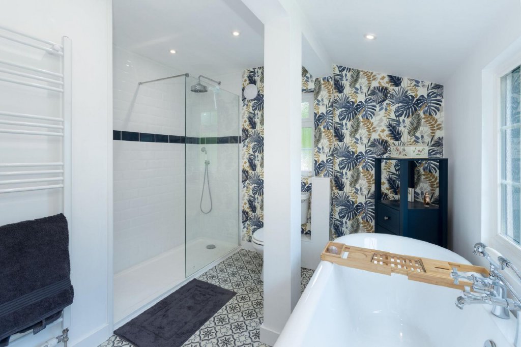 The newly fitted family bathroom is a bright room, featuring a large walk-in shower and a stunning clawfoot bath. Spacious hallways and large laundry cupboard and multiple access points to the abundant loft storage, where the solar battery is housed, completes this first floor level.