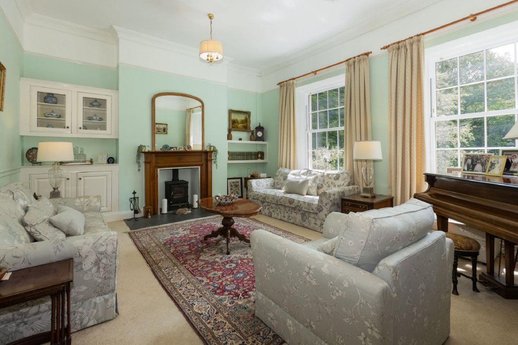 Entering through the original hallway you will find granite posts dating back to the home's origins, this hallway leads into the oak conservatory a bright space with views of the surrounding forestry. Moving back into the main hallway which flows into a series of beautiful rooms: a welcoming reception area, a lounge, and a morning room—all with high sash windows and working fireplaces that create a warm ambience.