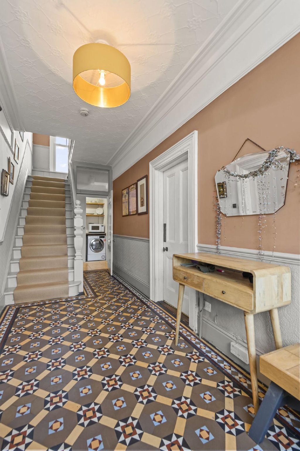 The property is introduced via an impressive Victorian tiled entrance hallway, setting the tone for the character and elegance found throughout. From here, the welcoming entrance hall leads to two large reception rooms, both with attractive period fireplaces. At the heart of the home lies the extended kitchen/breakfast room, which flows into a recently built enclosed utility area. A well-appointed cloakroom completes the ground floor.