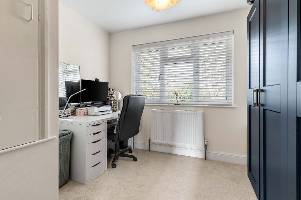 Upstairs, the first floor offers four well-proportioned bedrooms. The principal bedroom overlooks the rear garden and benefits from an en-suite shower room. Three further bedrooms are served by a stylish family bathroom featuring a freestanding bath and separate shower.