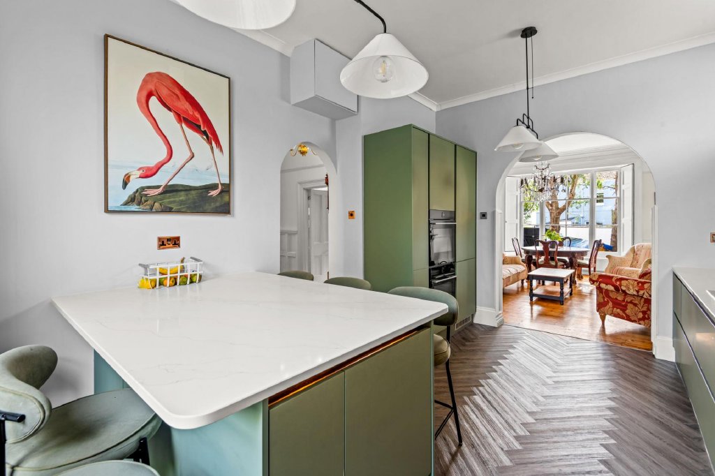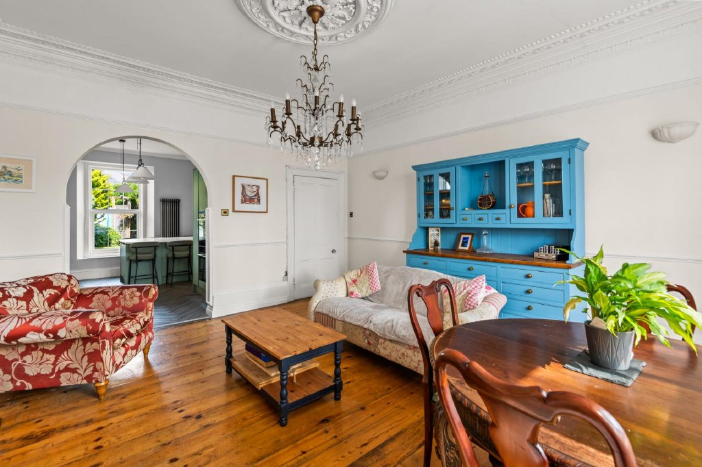 - Period features: high ceilings, ornate plasterwork, fireplaces, and stripped pine floors
