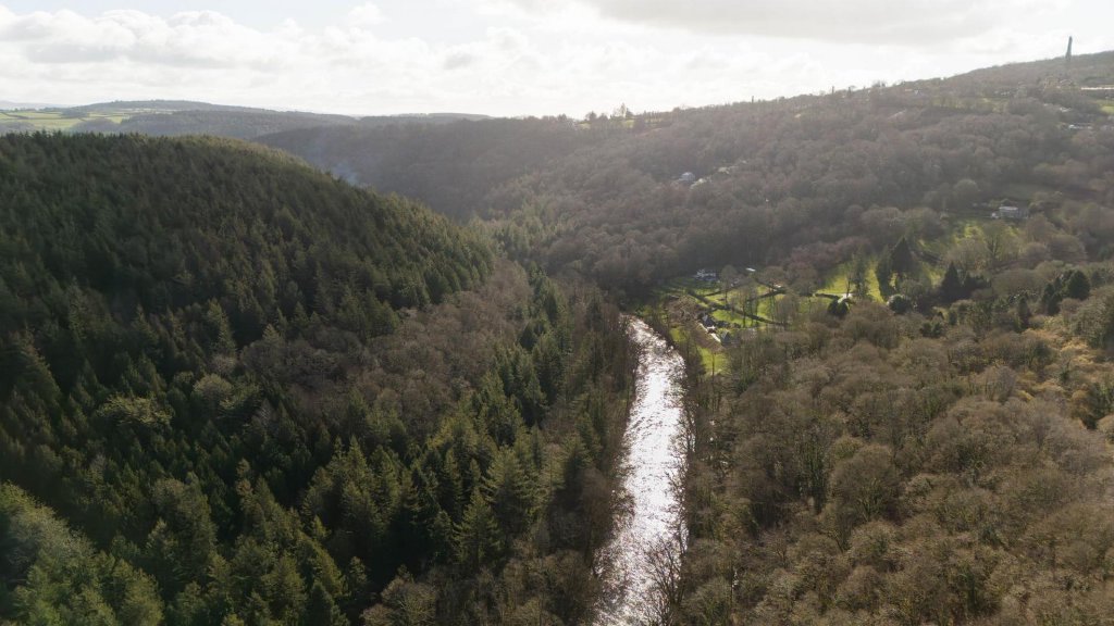 The first floor includes a bedroom and a stylish bathroom featuring a clawfoot bath, while the master suite offers an en-suite bathroom and his-and-hers built-in wardrobes. A large picture window overlooks the sitting room, framing breathtaking valley views that stretch as far as the River Tamar.