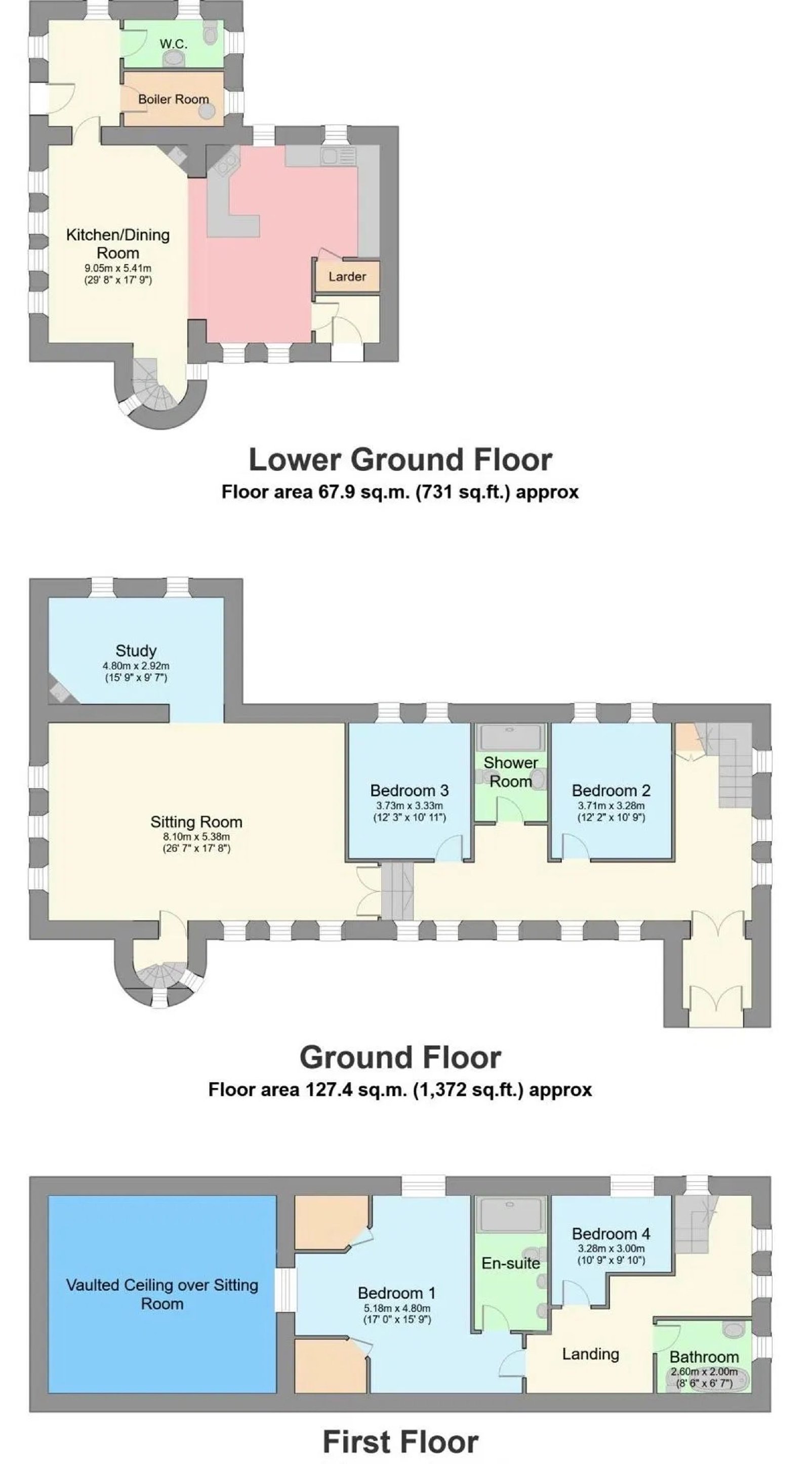 Thimble Hall boasts a generous total floor area of approximately 2,844 sq. ft. across three levels, seamlessly combining traditional character with modern convenience.