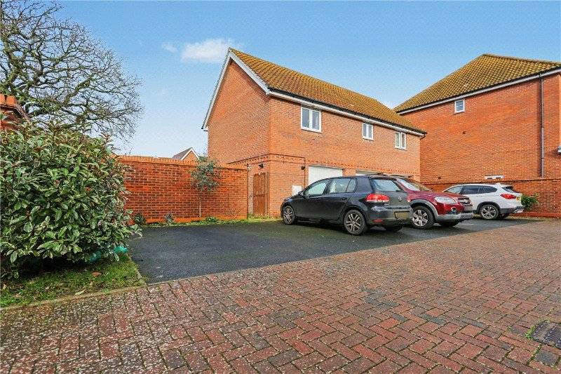 Outside, the enclosed rear garden feels like a natural extension of the interior living space, especially with the kitchen/diner opening directly onto it. A combination of lawn, patio and seating areas creates a setting perfect for summer dining and relaxation, all framed by mature planting and enclosed boundaries for privacy. A gated pathway leads to the parking, with ample space for at least two vehicles.