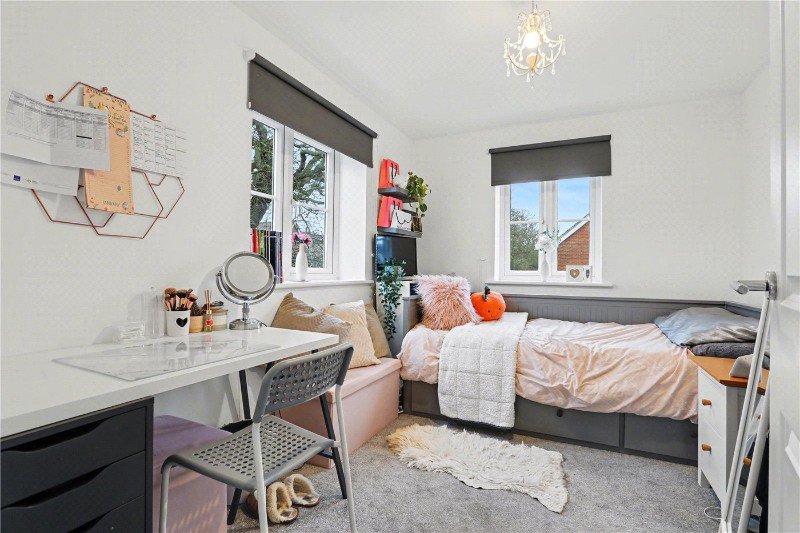 On the top floor, two additional spacious bedrooms await, including the main bedroom suite which features a sleek en-suite shower room. The remaining bedroom is equally comfortable, ideal for guests, children or continued home working.