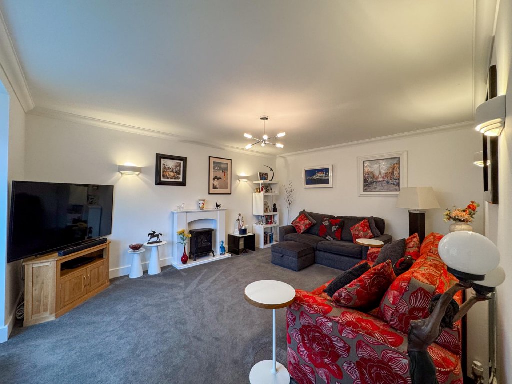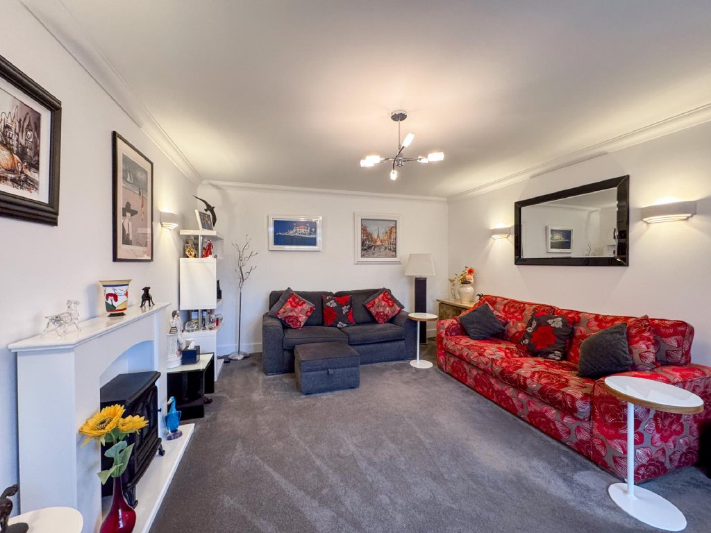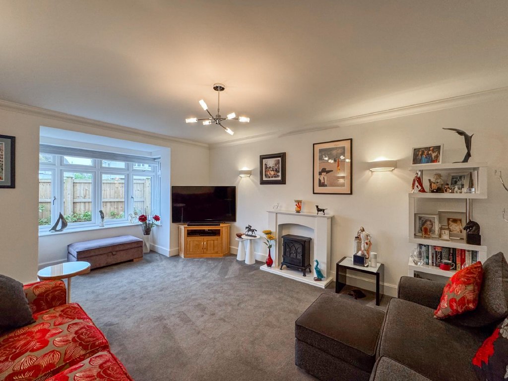 A formal lounge sits to the front of the property, featuring a charming box-bay window and a stylish fireplace, offering the perfect retreat for quieter moments.