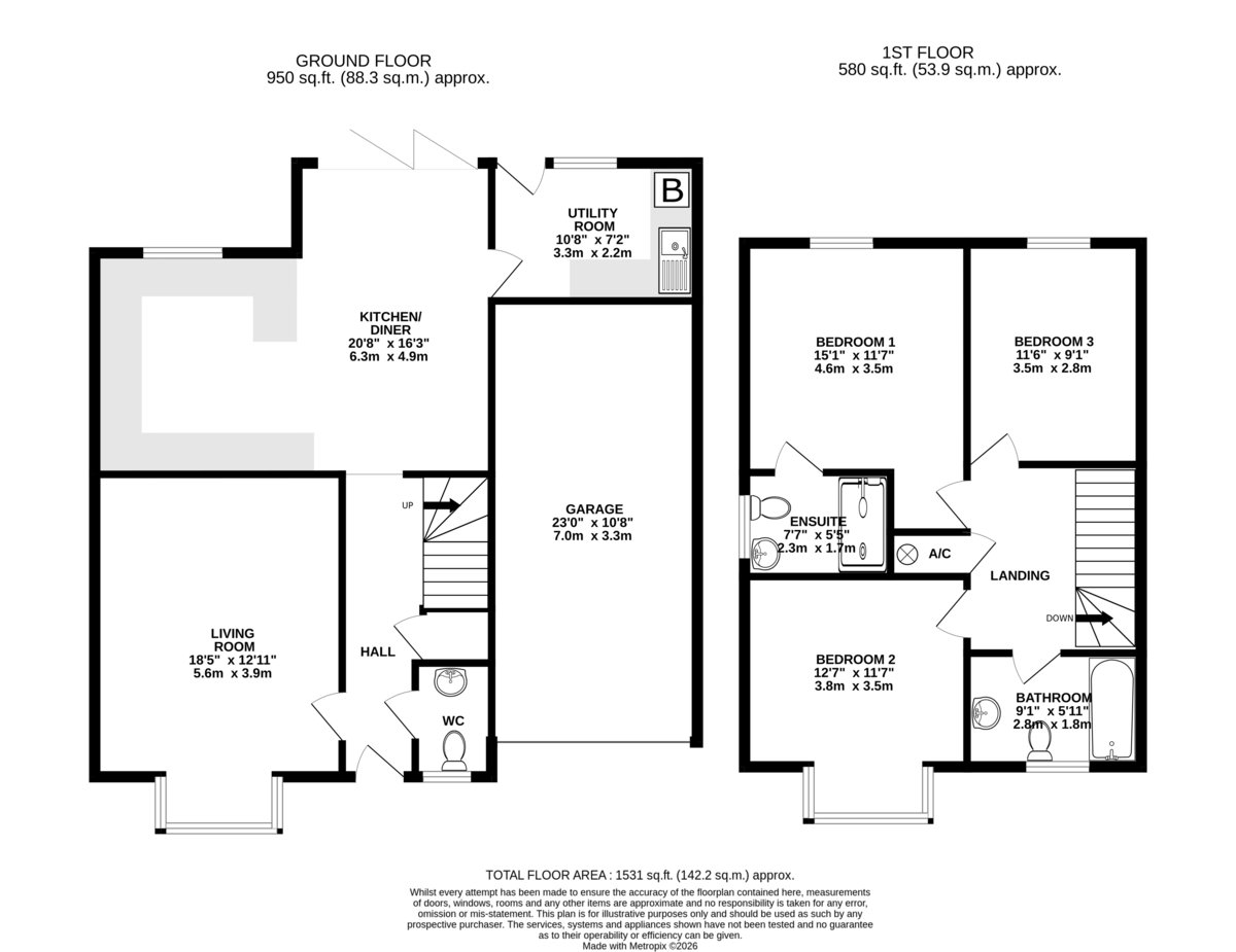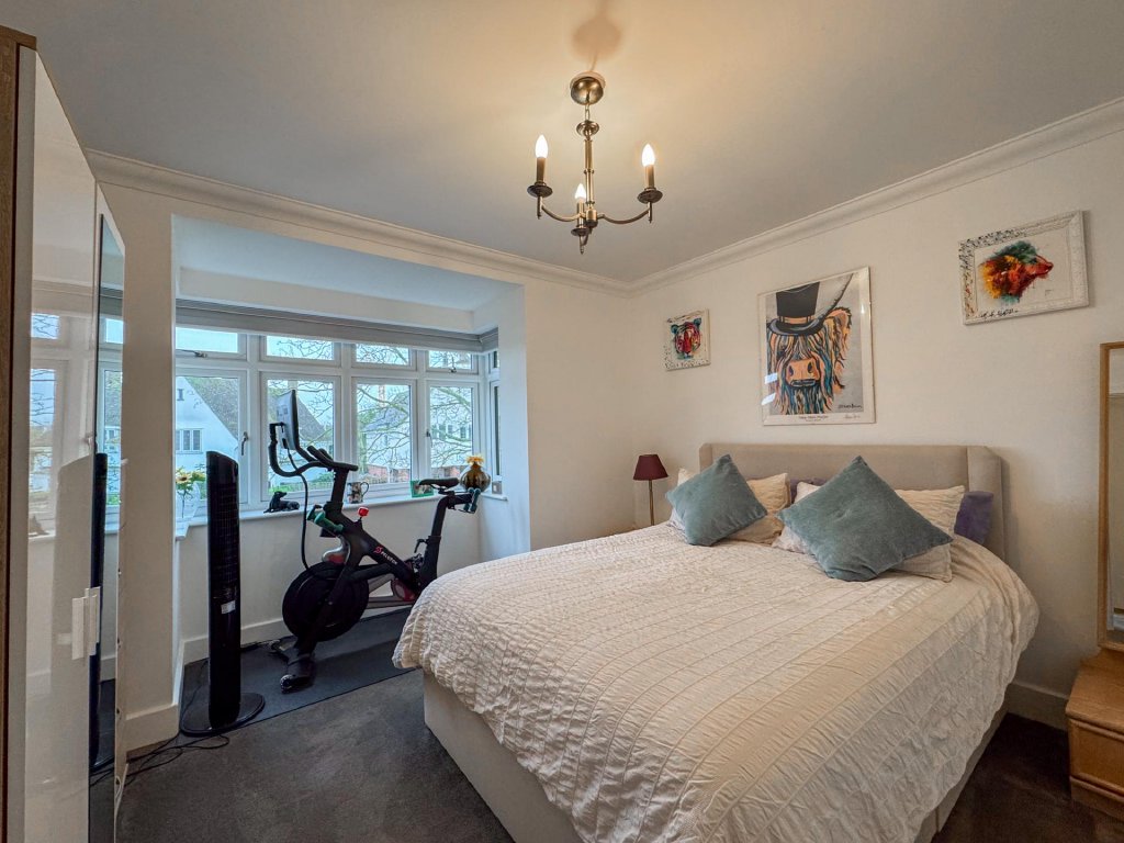 Upstairs, the principal bedroom enjoys garden views and a sleek en-suite shower room. Two further bedrooms provide flexible accommodation for family, guests, or a home office. The contemporary family bathroom completes the first floor.