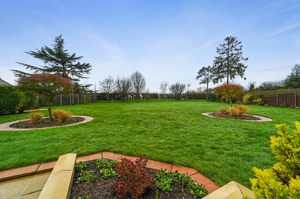 The expansive plot, bordered by open farmland, enhances the sense of privacy and creates a strong connection with the surrounding natural landscape.