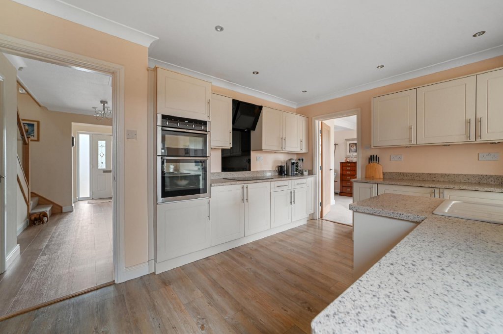 STEP INSIDE The welcoming entrance hall introduces the generous proportions and thoughtful design found throughout this impressive residence. The heart of the home is the stylish kitchen/breakfast room, an ideal setting for relaxed family gatherings and more formal entertaining. A cosy snug area sits adjacent, offering a comfortable retreat, while the separate dining room features striking bi-folding doors that allow the indoors to flow seamlessly into the garden.