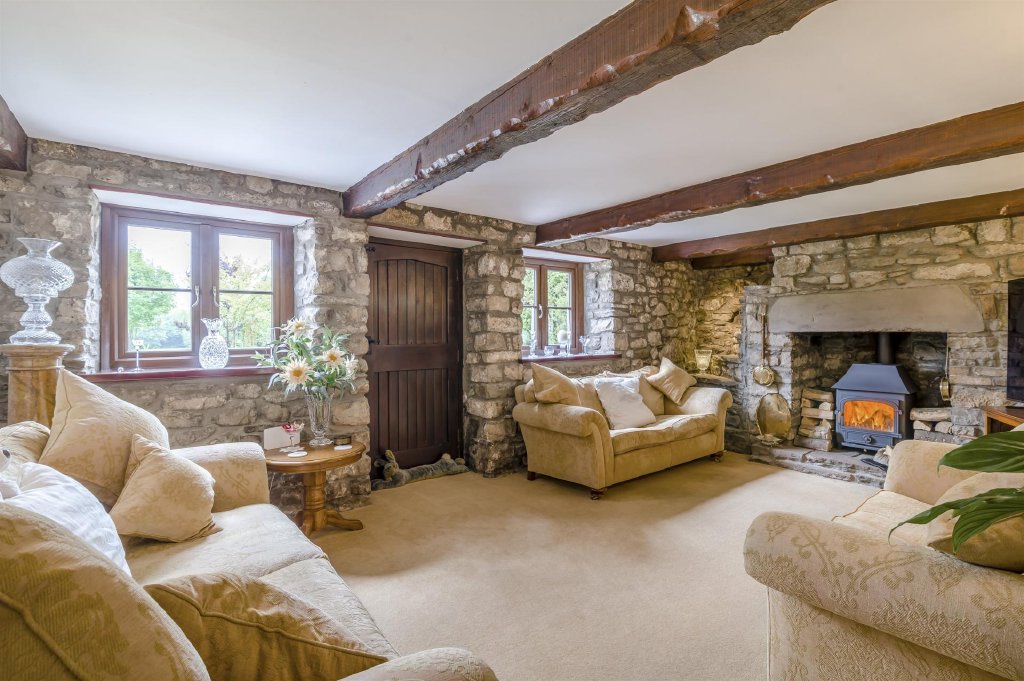 The living spaces are generous and brimming with character, offering a variety of inviting rooms to suit every occasion. A cosy split-level lounge, complete with a log burner and French doors that open onto the terrace, provides the perfect setting for relaxed evenings or summer gatherings that flow seamlessly outdoors. The formal dining room, with its handsome flagstone flooring and a double sided log burner, offers warmth and atmosphere for family dining or entertaining guests.