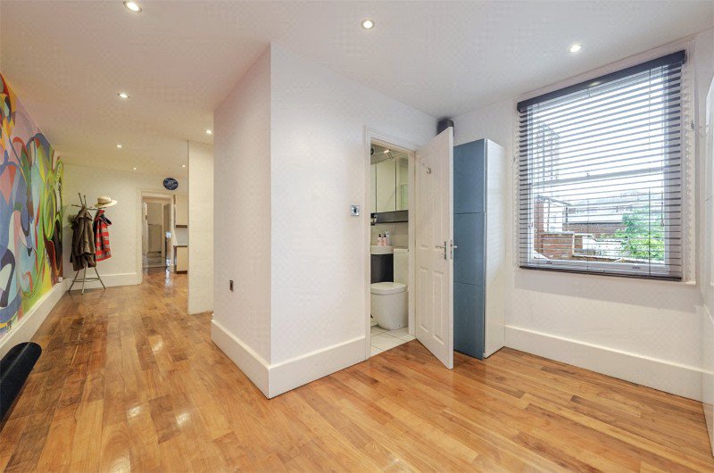 The first floor is home to the principal drawing room, an elegant and beautifully proportioned space with tall ceilings, ornate cornicing and double doors opening onto a balcony with outstanding views across Clarendon Square’s communal gardens. This floor also accommodates the principal bedroom with a hidden, compact en-suite WC and fitted wardrobes, alongside a family bathroom and a discreet utility room positioned off the landing.