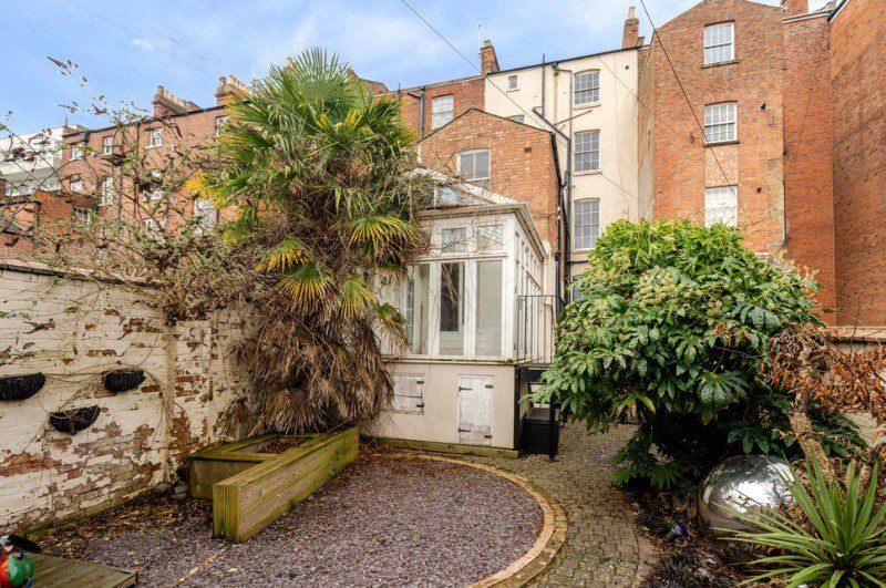 To the rear, the property enjoys an enclosed walled garden, thoughtfully arranged with a combination of paved and decked areas, mature planting and excellent privacy, creating a peaceful outdoor retreat in the heart of town.