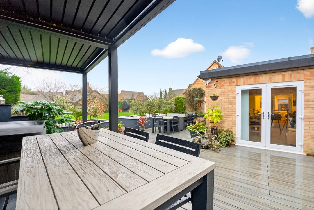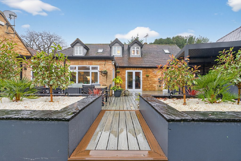 - Outstanding rear garden with entertaining areas and parking for four cars