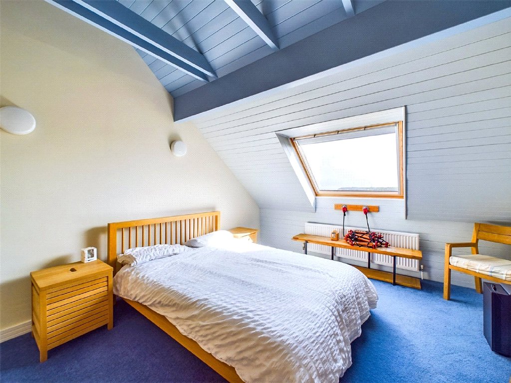 The final bedroom sits on the top floor, with built in storage cupboards and a Velux window offering far-reaching views across the bay.