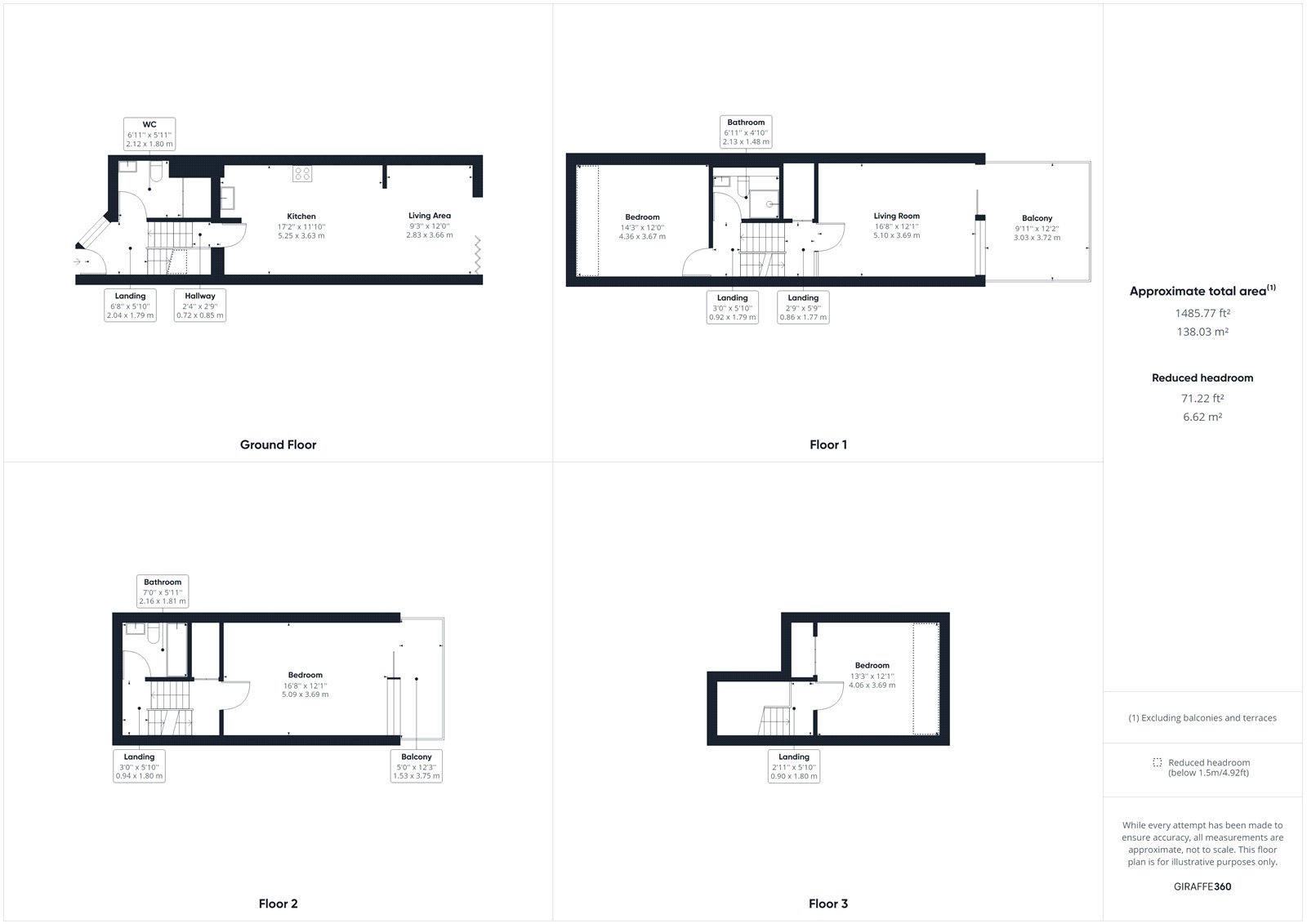 The first floor comprises split level accommodation to include a shower room, with shower cubicle, WC and wash handbasin and a living area, which could also be utilised as a fourth bedroom. Sliding doors provide access to the South-West facing balcony, with glazed balustrade. Up a half-flight of stairs to the rear is a large double bedroom.