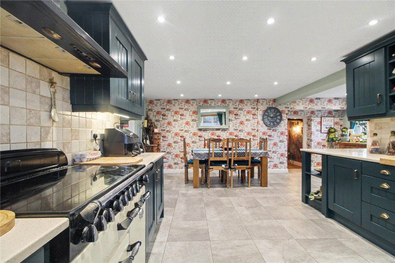 The main house has been extensively extended and enhanced over time, resulting in a layout that flows effortlessly while offering excellent flexibility for modern family life. At its heart sits an impressive contemporary kitchen/diner, a genuine social hub with generous proportions, well suited to entertaining and everyday living alike. This is supported by a separate utility room, ensuring practicality is kept discreetly out of sight.