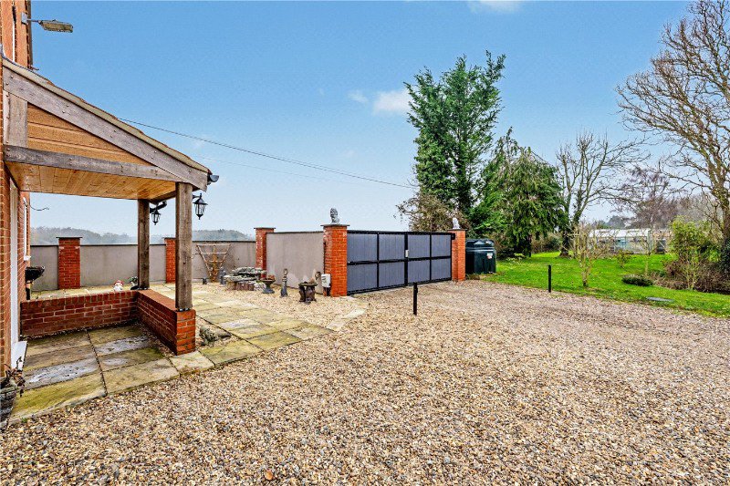 The approach immediately sets the tone, with an expansive gravel driveway providing extensive parking and leading to a large double garage measuring 28’5” x 16’5”, complemented by an attached brick-built store, ideal for bikes, tools or garden equipment.