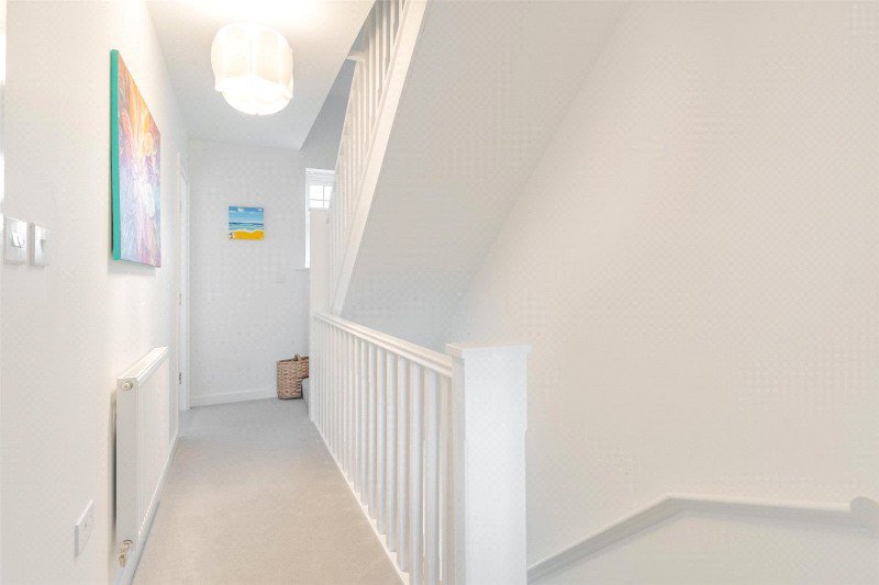 A straight staircase leads to a first floor landing with airing cupboard housing the pressurised hot water cylinder. On this level there are 2 bedrooms and a family bathroom (with bath, wash basin, WC and towel radiator). Further stairs lead to the second floor and the principal bedroom which has a loft access and an en suite shower room (with shower, WC, wash basin and skylight).