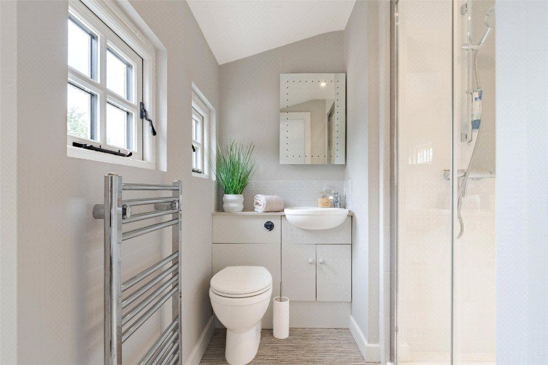 Bedroom 2 is a large, triple aspect room with a built-in wardrobe, eaves storage cupboards, and an en suite shower room (with shower, wash basin, WC and towel radiator). Bedroom 3 also a spacious double, has a dual aspect, a built-in wardrobe and 2 eaves storage cupboards. The family bathroom features a bath (with shower and screen over), WC, wash basin, electric shaver point and towel radiator.