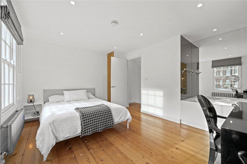On the first floor, there is an impressive principal bedroom with ample built-in storage, along with a large family bathroom offering a pleasant view from a single sash window. The second floor comprises two further bedrooms, presented in similarly excellent condition to the rest of this beautiful home. The basement includes a large additional reception room/bedroom and a utility room; accessed via a few stairs, there is a very private garden.