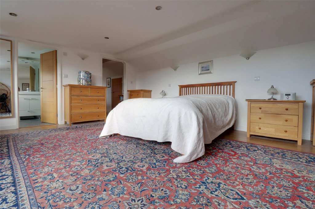 To the first floor, the elevated position allows for particularly attractive views, taking in the estuary, Braunton Burrows and glimpses of the coastline, enjoyed from both the principal bedroom and the sitting/TV area. These views add a real sense of space and connection to the surrounding landscape, rarely found so close to the village centre.