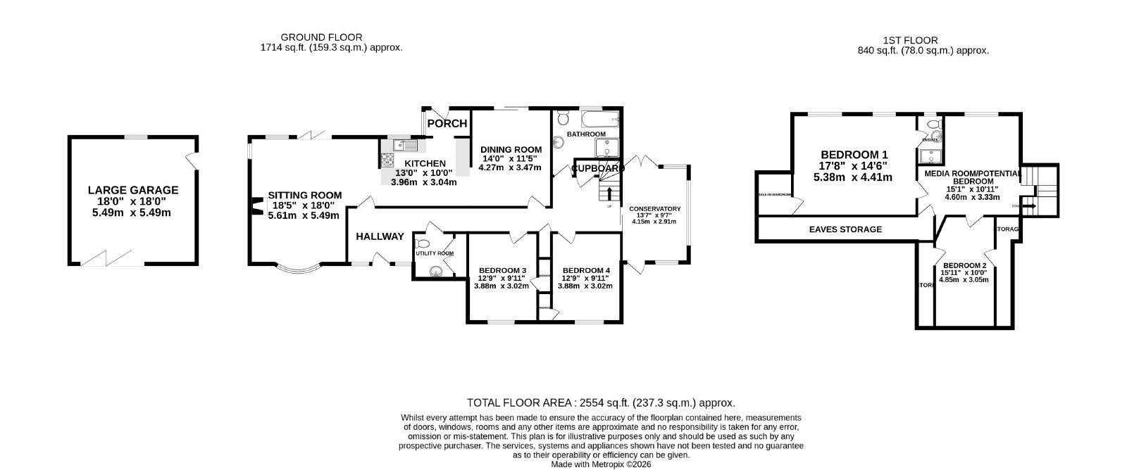 A detached large garage, ample private parking including space for a motorhome or boat, and extensive storage complete the outside offering.