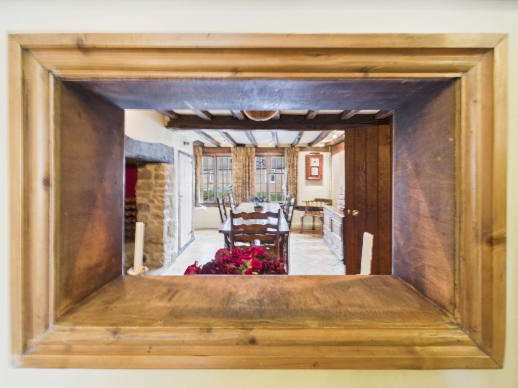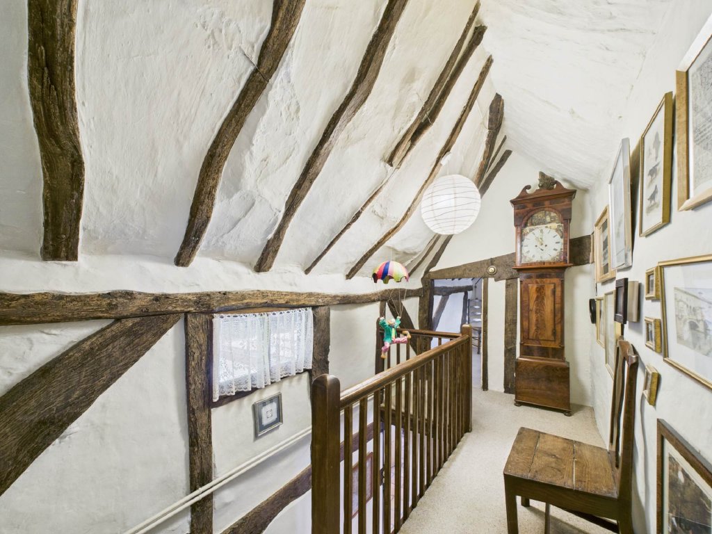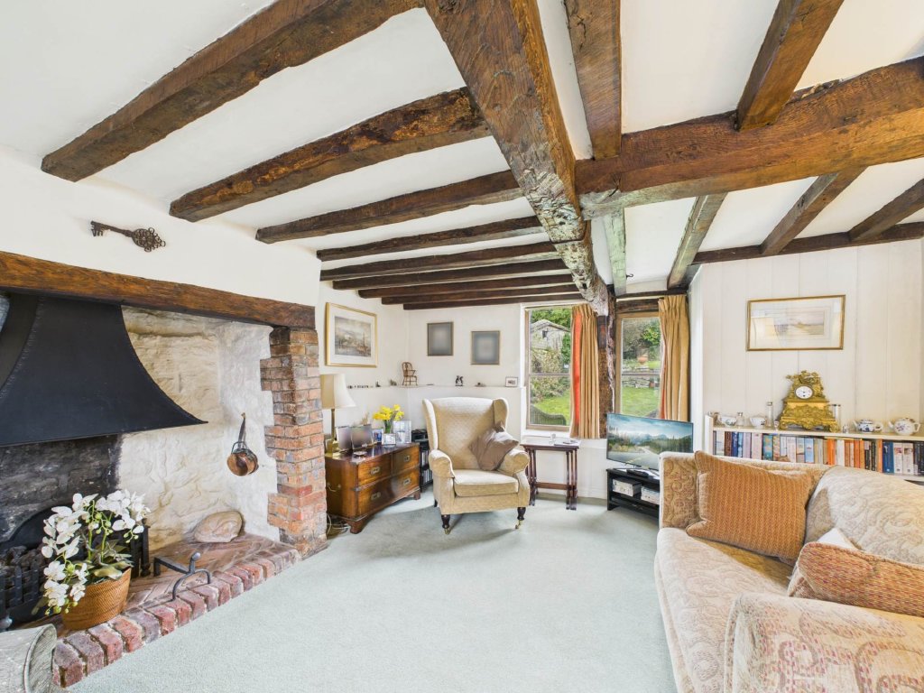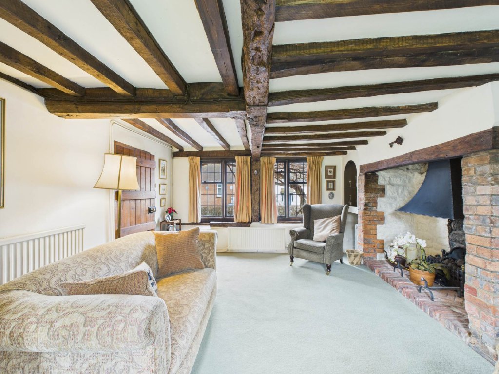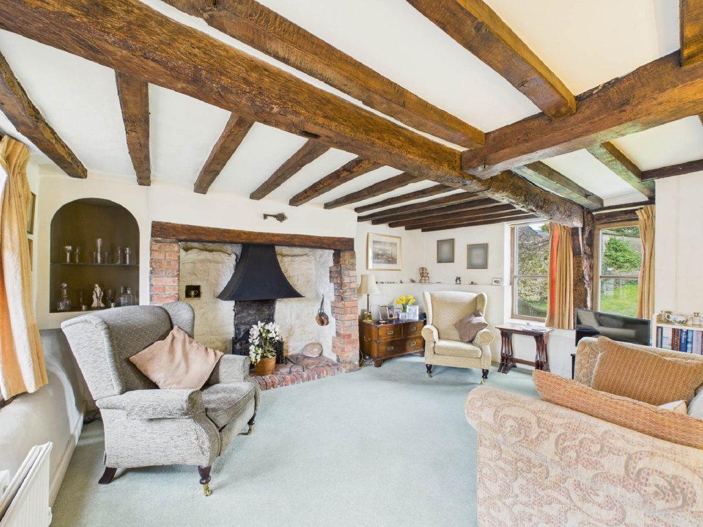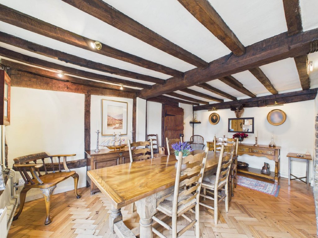 The front door opens into a welcoming entrance hall, from which the principal reception rooms unfold. At the front of the house, both the dining room and the double-aspect sitting room enjoy cosy inglenook fireplaces, exposed timbers and a warm, intimate atmosphere that perfectly reflects the home`s heritage.