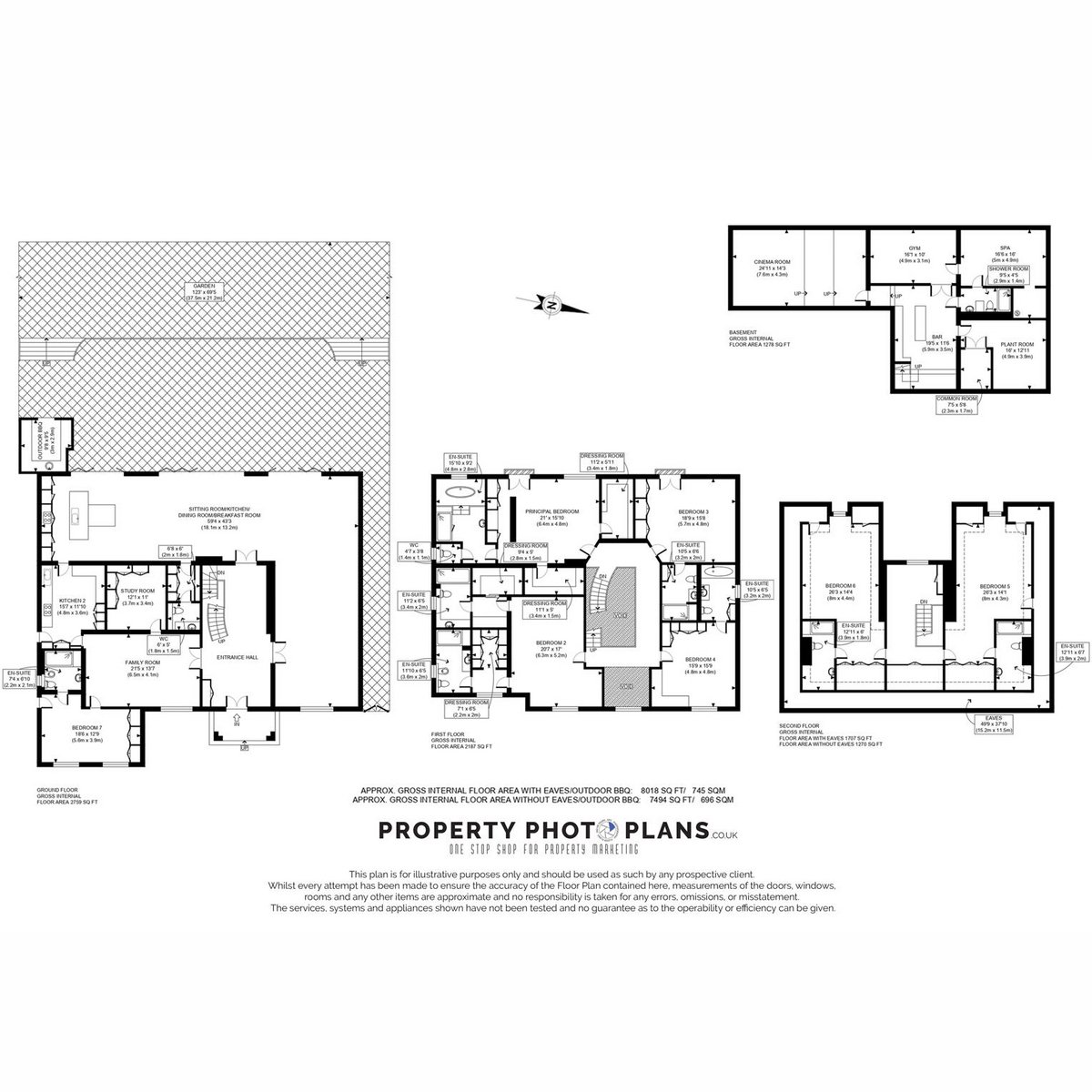 There are 6 principal bedrooms arranged over the upper floors, all en suite, including an impressive principal suite with dressing rooms and a luxurious en suite bathroom. The basement level provides a superb leisure suite with cinema room, gym, wet bar and spa area ready for personalisation. Underfloor heating and air conditioning are installed throughout.