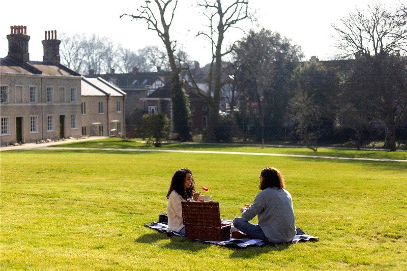 There is an exceptionally generous abundance of outside space, with the expansive green central communal gardens and woodland areas providing residents with a serene and ecologically rich outdoor space to socialise, relax, and engage in active outdoor pursuits.