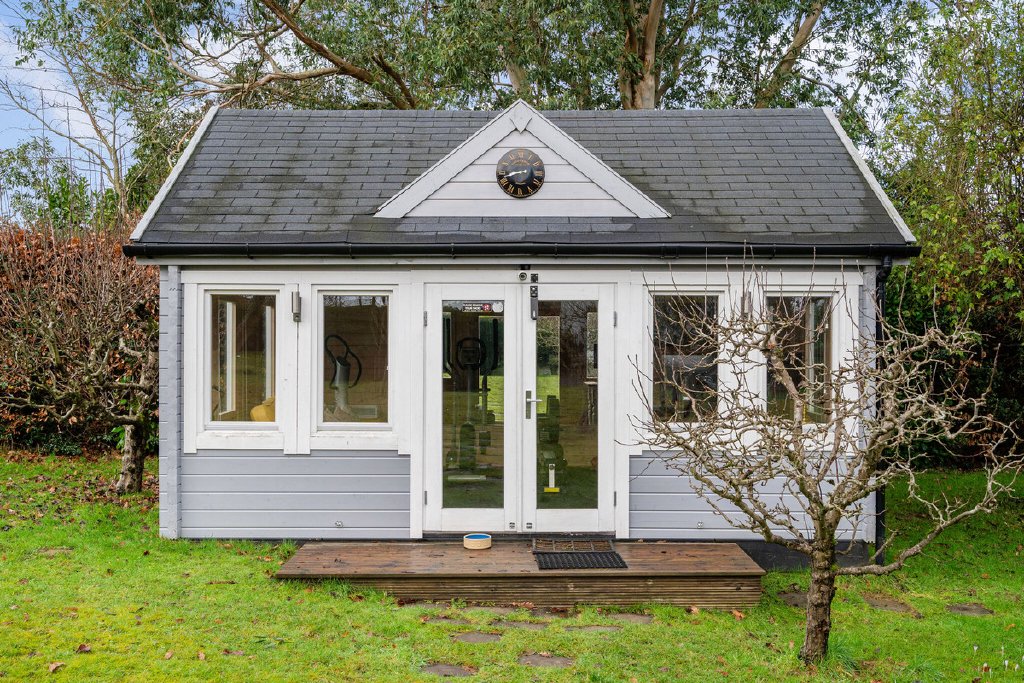 The mature rear garden has been beautifully landscaped to create a refined and tranquil outdoor setting, with sculpted topiary lending structure and year-round interest. Three cascading ponds provides a peaceful focal point, while a charming pavilion-style garden room — currently arranged as a private gym and office — offers excellent versatility. For leisure and entertaining, the garden also features its own aire de jeu, perfect for pétanque and relaxed afternoons with family and friends.