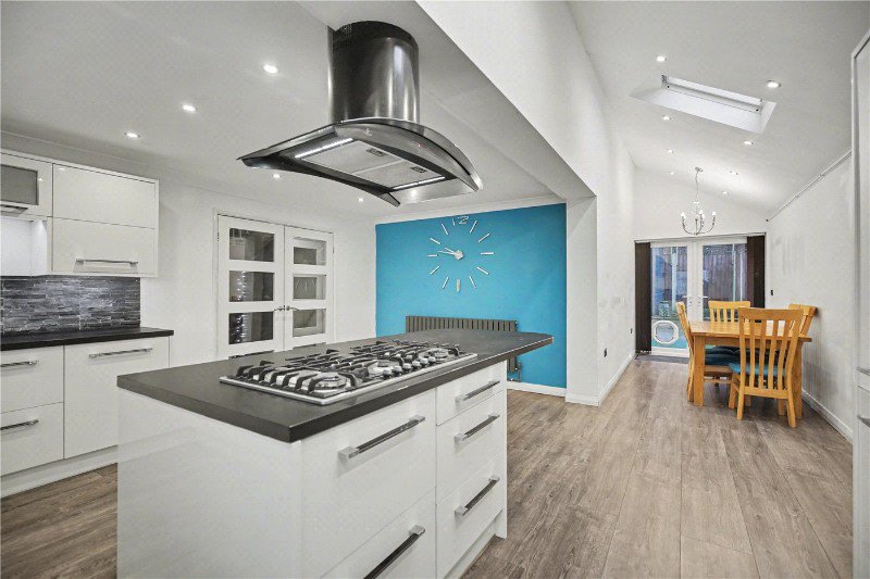 Tucked away in a popular cul-de-sac in Costessey is this beautifully extended and renovated 2 bedroom home. The impressive open plan kitchen/dining family area forms the centrepiece of this home, offering a stunning specification and an impressive sense of space, perfectly suited to modern living. Incorporating a bespoke dining area and generous family seating space, the room is flooded with natural light from a Velux window and additional glazed aspects. The kitchen is exceptionally well fitted with a comprehensive range of white gloss wall and base units beneath complementary work surfaces and stylish tiled splashbacks. Integrated appliances include a combination oven with warming drawer, fridge/freezer, washing machine and dishwasher, together with a 1.5 sink and drainer. A substantial central island provides further storage and breakfast seating, complete with a six-ring gas hob and extractor above. Underfloor heating enhances comfort, while French doors open directly onto the garden. Smooth plastered ceilings and contemporary finishes continue throughout, reinforcing the high-quality feel.