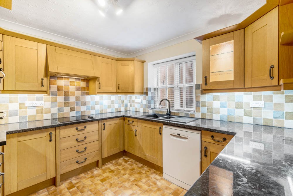 • Traditional-style fitted kitchen with composite granite style worktops and tiled splashbacks