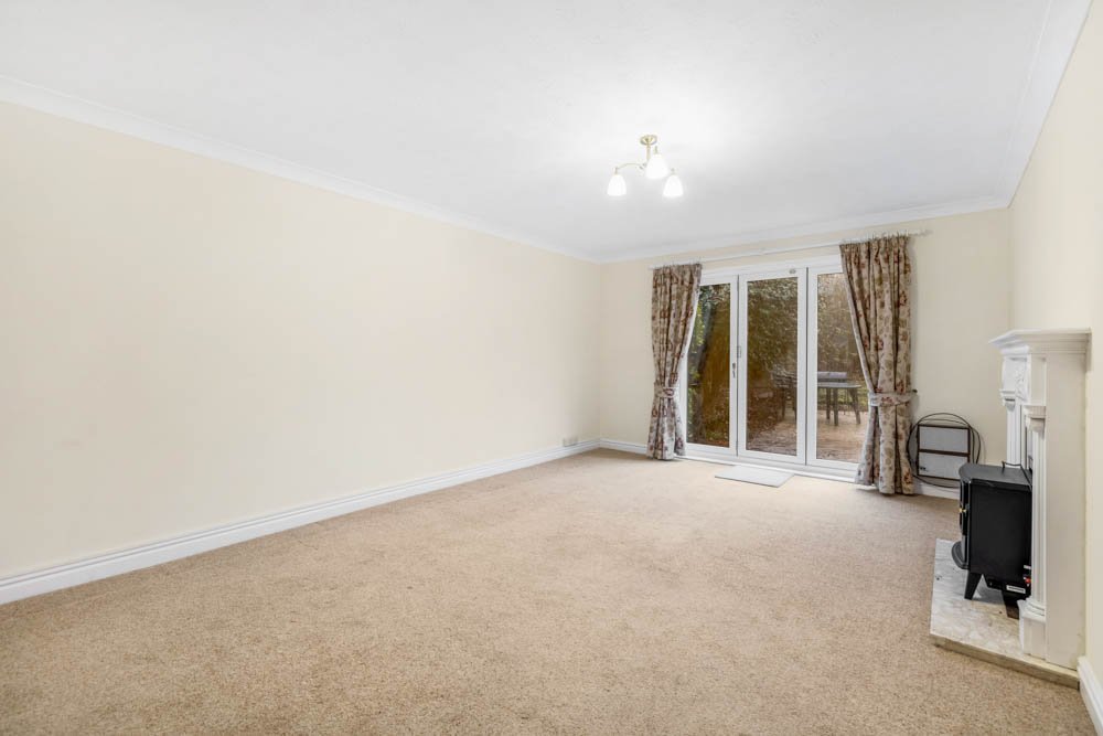 The property is entered via a welcoming reception hall, finished with attractive parquet-style flooring and providing access to the principal ground-floor rooms. The main sitting room is generously proportioned, featuring a decorative fireplace and enjoying a pleasant outlook over the garden, with bi-folding doors opening directly onto the rear patio. To the front of the property, a separate reception room offers versatile accommodation, ideal as a formal dining room, study or playroom.