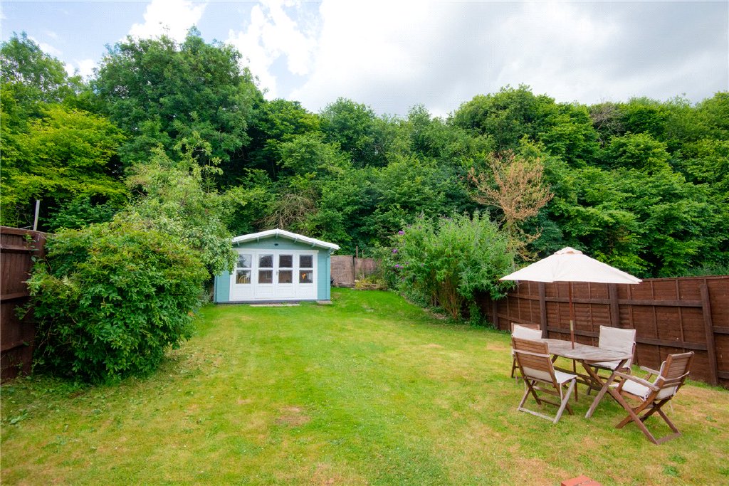 Externally, the sizeable rear garden is mainly laid to lawn with a selection of mature trees and shrubs, providing good privacy. A patio, accessed off the sitting room, offers the ideal spot to sit and relax in the sunnier months whilst the well-appointed summer house, with light & power, works beautifully as a comfortable home office or children’s playroom. To the front, there is a further area of lawn as well as a large driveway, offering ample car parking space