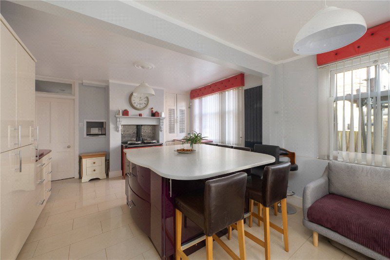 At the front you will find the main reception room with bay windows overlooking Victoria Park. This makes a great living room to enjoy the views from the front of the house, but the owner, for her own uses, reconfigured as a secondary kitchen in 2020. This room in its current configuration would be perfect for multigenerational living, but the owner states that this can be easily converted to its original status.