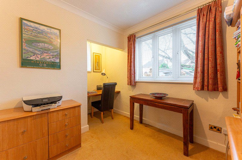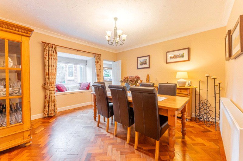 The formal dining room is positioned to the rear, enjoying views over the garden and providing an excellent setting for entertaining, with easy access through to the kitchen.