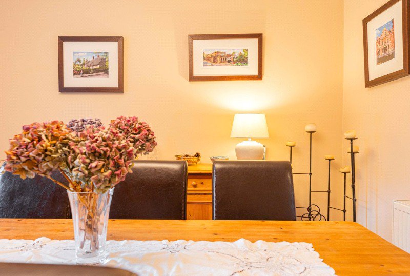 The kitchen diner is well proportioned and filled with natural light, offering ample space for everyday family dining. While the kitchen is original, it has been well cared for and presents an excellent opportunity for future owners to modernise and personalise over time. Doors open directly onto the rear terrace, creating a strong connection between the house and garden.