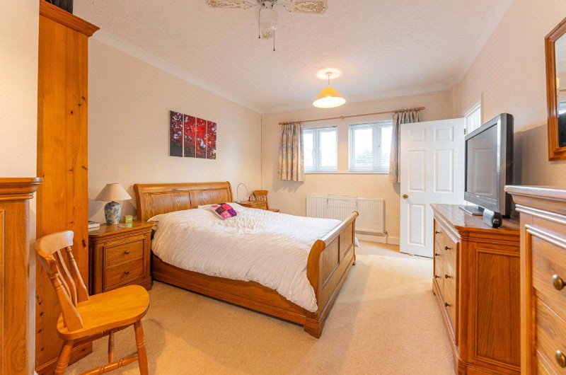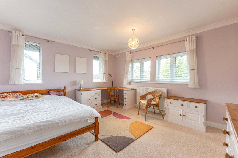 The principal bedroom is a generous double room with a walk-in wardrobe and a private en-suite bathroom. There are three further bedrooms on this floor, all offering excellent flexibility for family living or guest accommodation, and they are served by a well-appointed family bathroom.