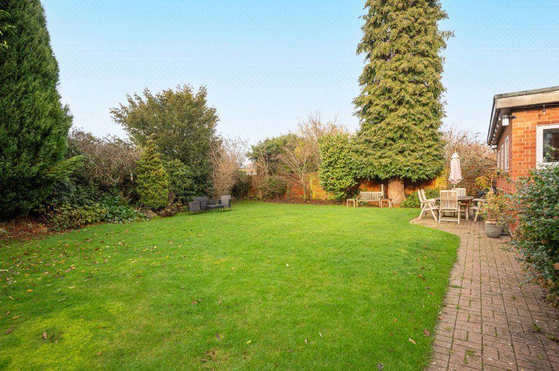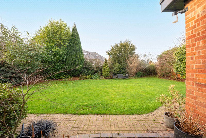 The property sits within a mature and well-maintained plot, with gardens extending to both sides of the house and providing excellent privacy. The rear garden is mainly laid to lawn with a generous paved terrace, ideal for outdoor dining and entertaining, while established planting and boundary screening create a secluded and peaceful setting.