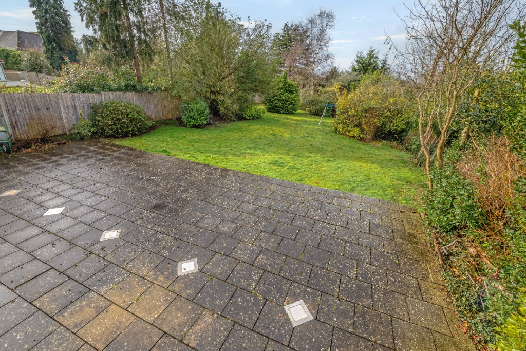 Externally, the property continues to impress. A mature rear garden offers privacy and serenity, ideal for alfresco dining and family enjoyment. To the front, a generous carriage driveway leads to a double garage, ensuring ample parking and storage.