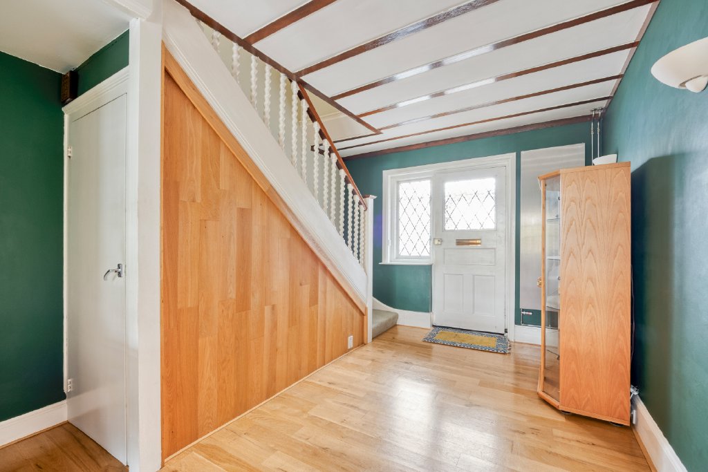 Upon entering, a welcoming hallway sets the tone for the refined interiors beyond. Two beautifully appointed reception rooms offer distinct yet complementary spaces—ideal for both formal entertaining and relaxed family gatherings. The principal reception room is bathed in natural light, while the second provides a cosy dining room or an elegant study. To the rear, a delightful conservatory overlooks the garden, creating a seamless connection between indoor and outdoor living and offering a tranquil setting throughout the seasons.